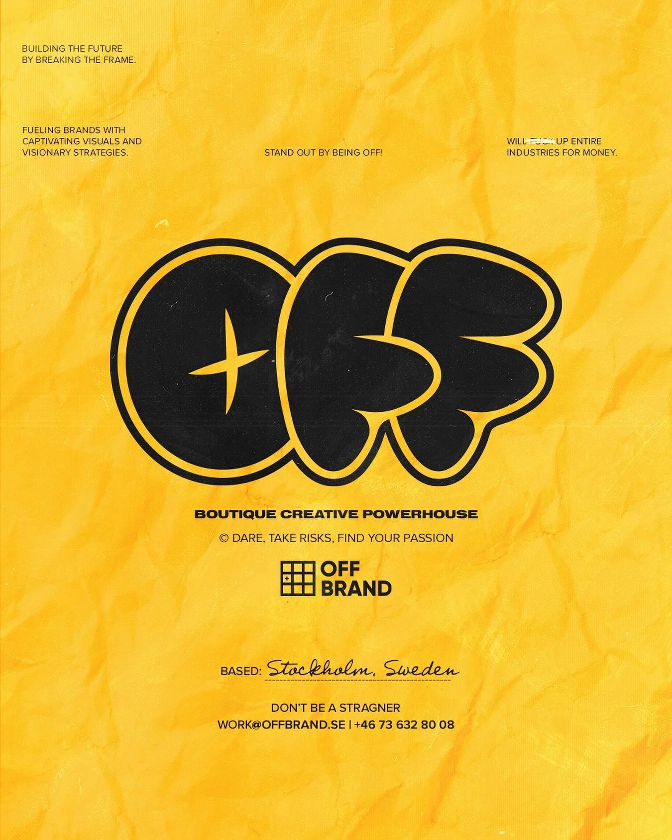 … the founder of Off+brand. With over 10 years of experience in creative work, I bring a unique combination of strategic thinking and hands-on design expertise. I’ve had the privilege of working with international brands such as Nike, Burger King, and Klarna, delivering everything from high-level brand strategy to detailed design execution.
