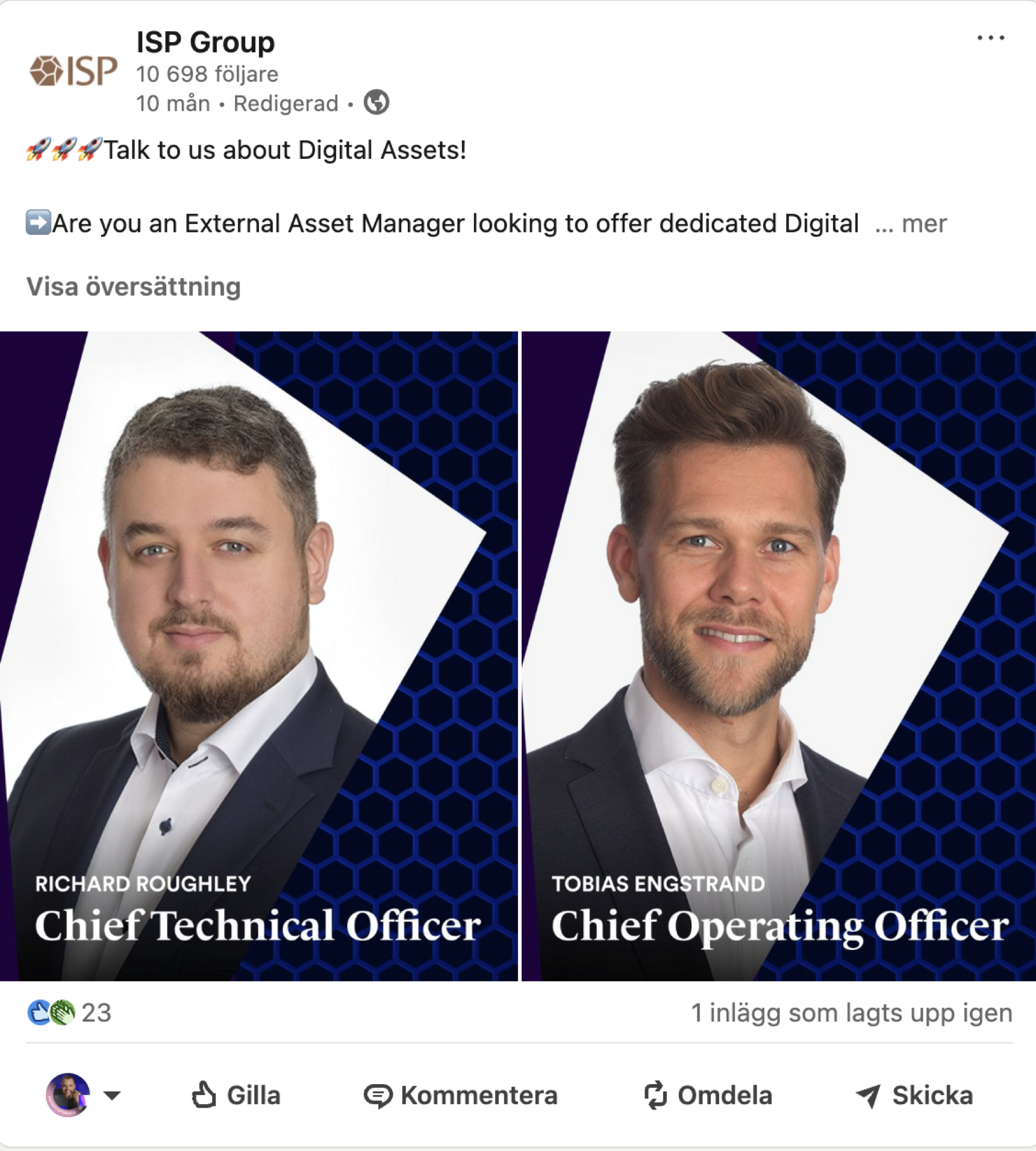 ISP Group is a Swiss regulated securities firm. They had just opened a Digital Assets department. Institutional-grade custody, blockchain services, sponsored access to regulated trading venues. The product was serious. The presentation was not.