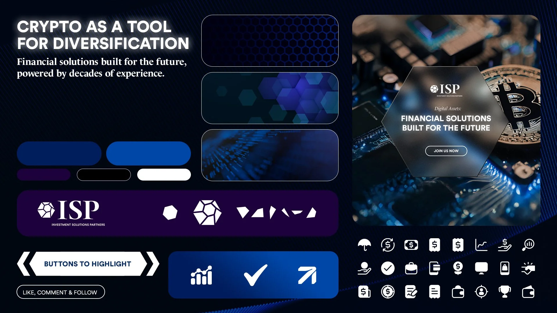 It was narrow by design. Not a full rebrand. ISP needed a sub-identity for their Digital Assets department: something that felt native to the fintech space, coherent enough to build trust, and simple enough that their own team could operate it going forward.